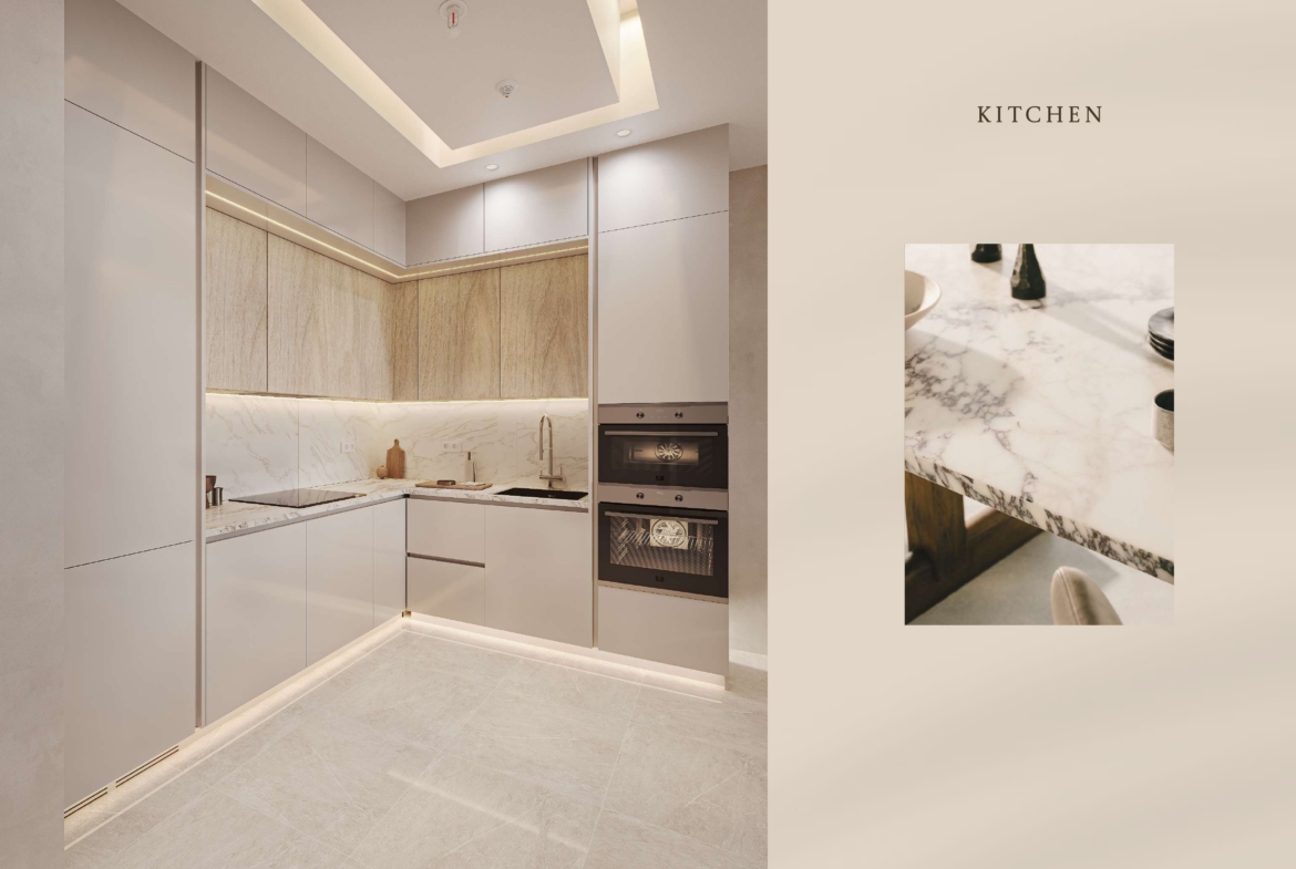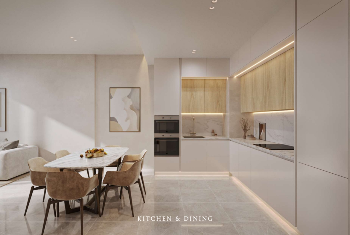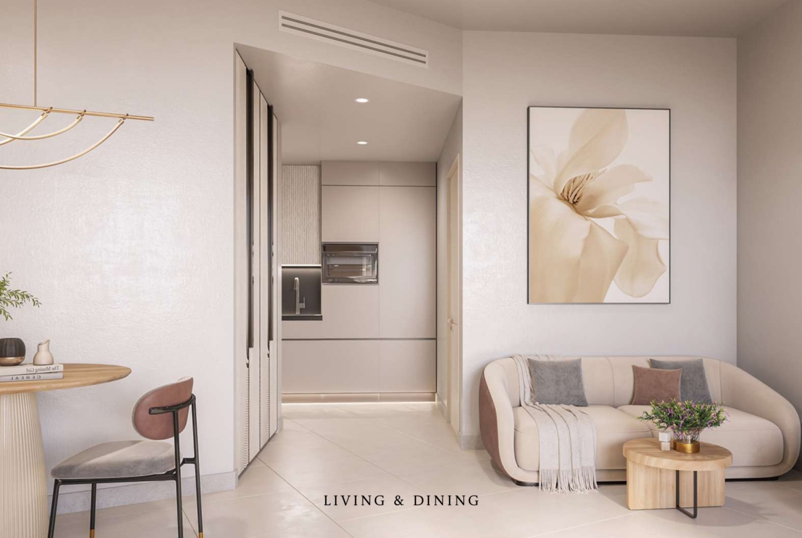 The development features a contemporary mid-rise tower with a curated selection of studio, 1-bedroom, and 2-bedroom apartments, each designed with open layouts, functional spaces, and private balconies that maximize natural light and city views. Interiors reflect modern elegance, combining clean lines, soft tones, and premium finishes to create comfortable yet sophisticated living spaces.