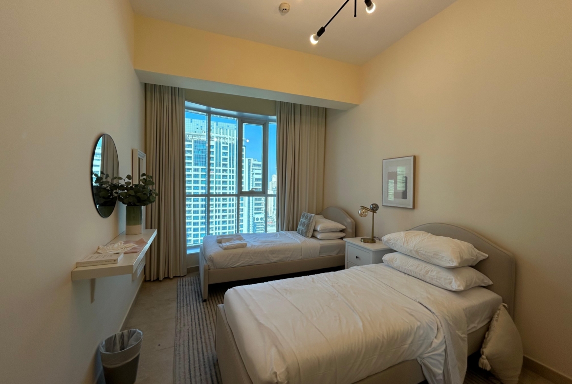 Buckingham Real Estate is proud to offer this fully furnished, custom-upgraded apartment, professionally reconfigured to provide two separate rooms, located on a high floor in Dubai Star, Jumeirah Lake Towers.